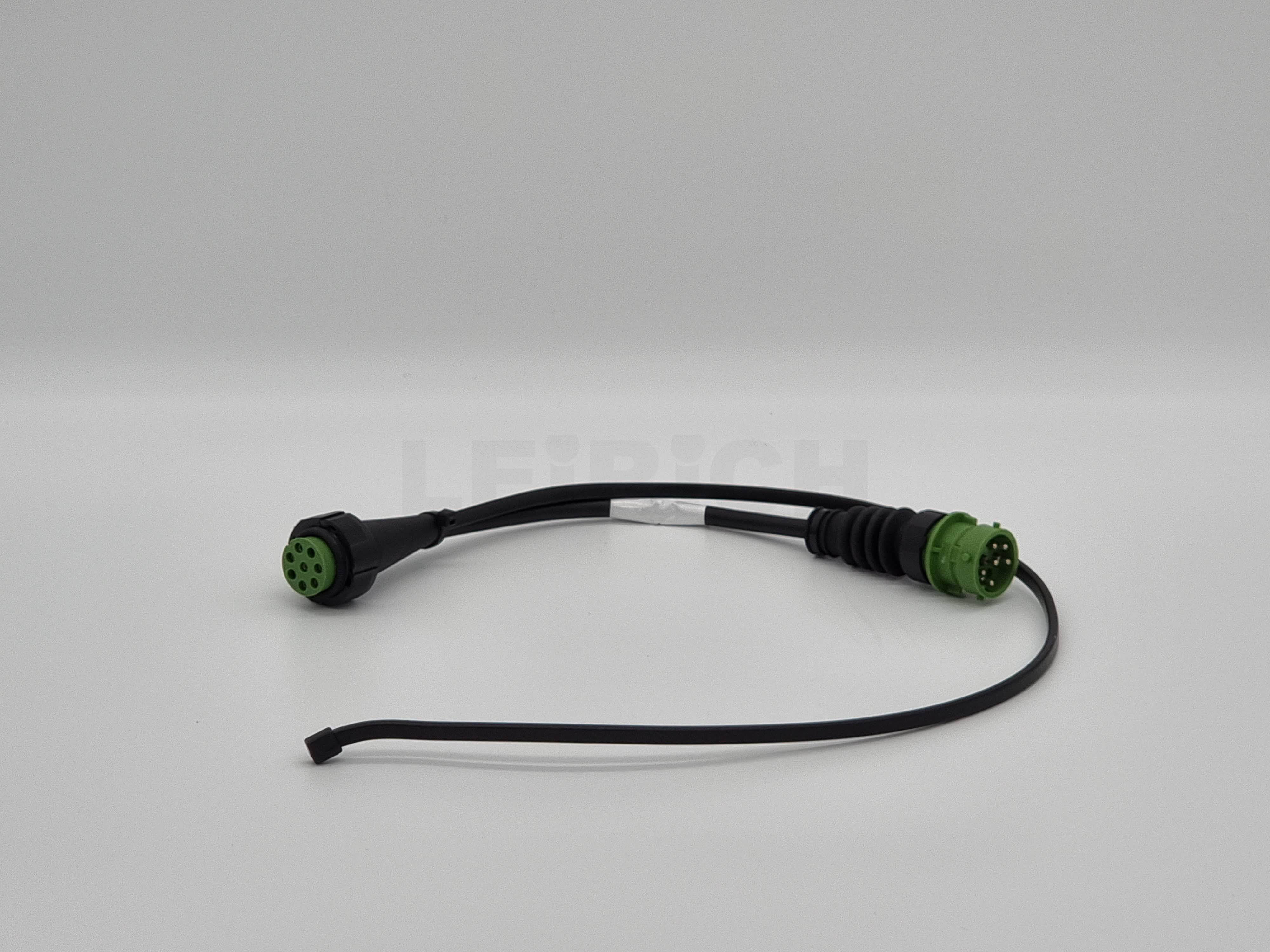 Zwischenstecker zur Montage zwischen Heckleuchte und Hauptkabel mit 8-pol. Bajonettverschluss und 2-pol. 0,75 qmm Zusatzleitung zur Montage des Rückfahrscheinwerfers.